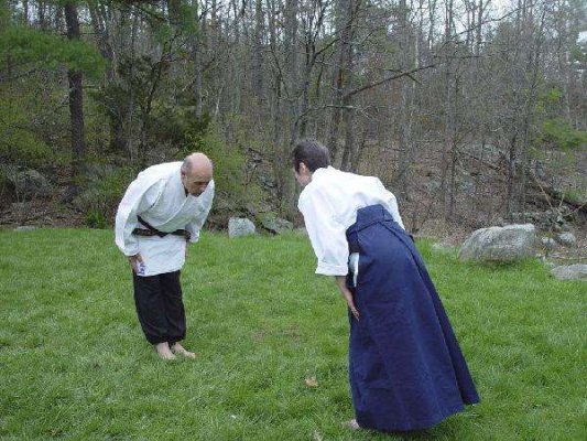 In Aikido, etiquette represents respect and safety. Because the martial arts are by nature physical and because we can inadvertently injure, we place a great deal of importance on observing dojo (school) norms, such as thanking and bowing to each other frequently and deliberately. We remind each other——and ourselves—of our positive intent. Proper etiquette is a distinguishing characteristic of a good dojo.
